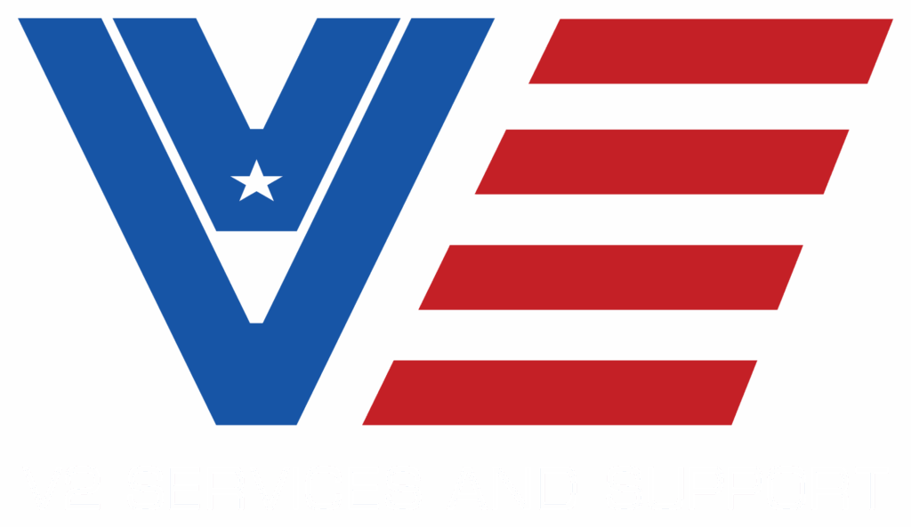 “V²” (formally known as “V2 Services and Support), was created by combining two prior potential names. It represents how Brian wishes to deliver the next level of veteran aid as well as veterans supporting veterans. The design mark for V² is crafted carefully with meaning. One V (veteran) is the support for another. It holds one star to represent unity towards the community and cause. Six strokes to represent each brand of the military.